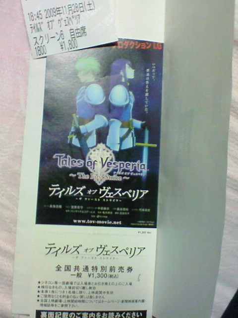 地元での上映が、4日までなので、恐らく最後になるであろう5回目のヴェスペリアをみてきました!